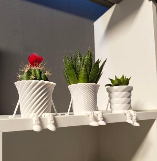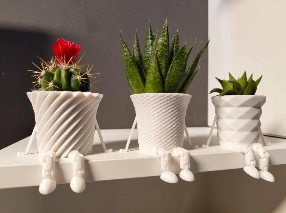 3er Übertopf Set STL – Sitzende Pflanztöpfe mit flexiblen Beinen, 3D Druckbar ohne Stützen