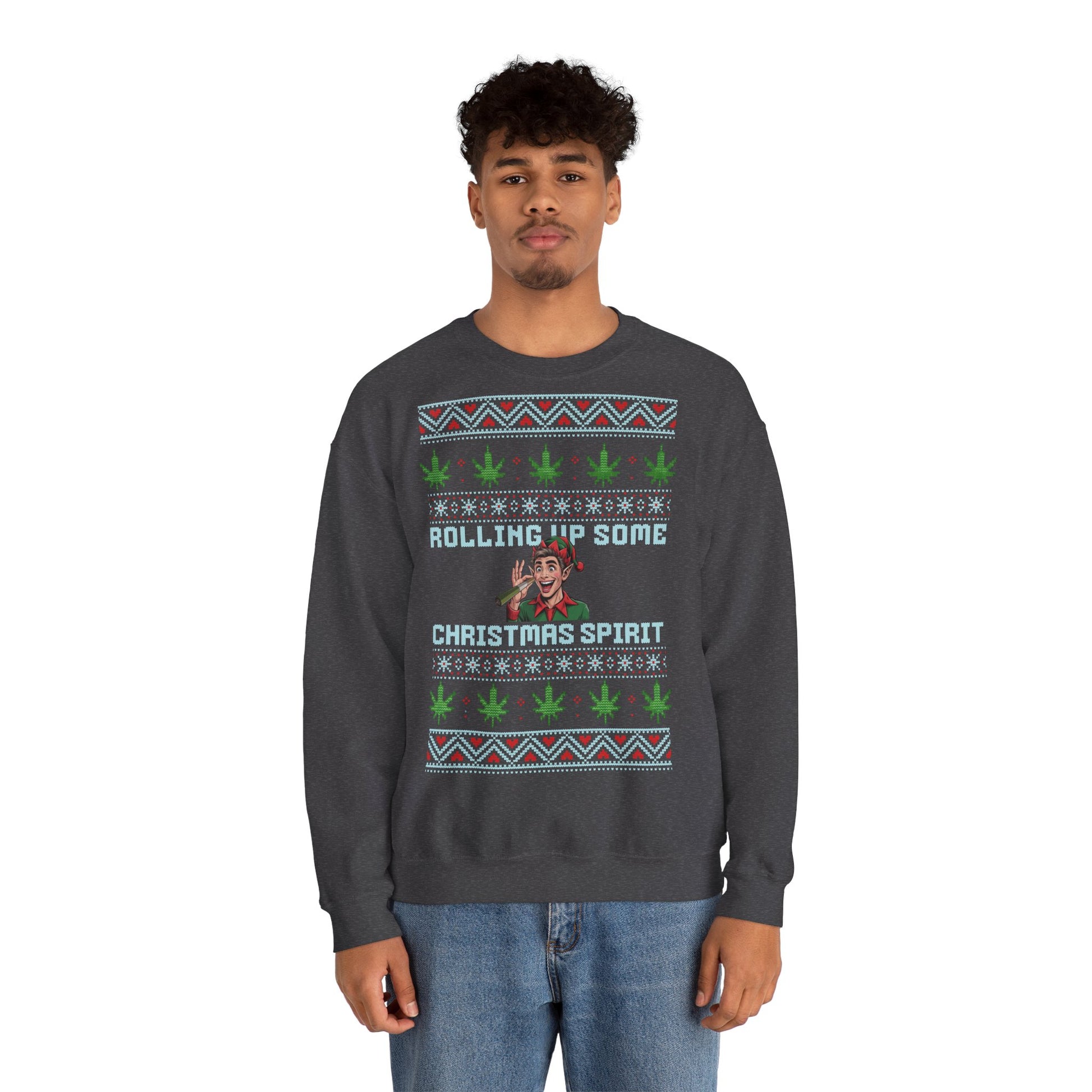 Rolling Up Some Christmas Spirit Sweater Funny Xmas Cannabis Ugly Sweater Style Unisex